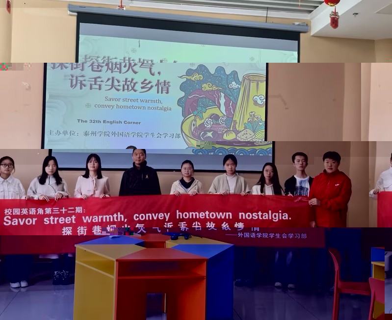 10月22日下午,我院第三十二期校園英語角活動在陽光小屋順利舉行。本期活動以“探街巷煙火氣,訴舌尖故鄉情”為主題,通過豐富多樣的展示形式,引導同學們在交流互動中領略美食文化的獨特魅力。